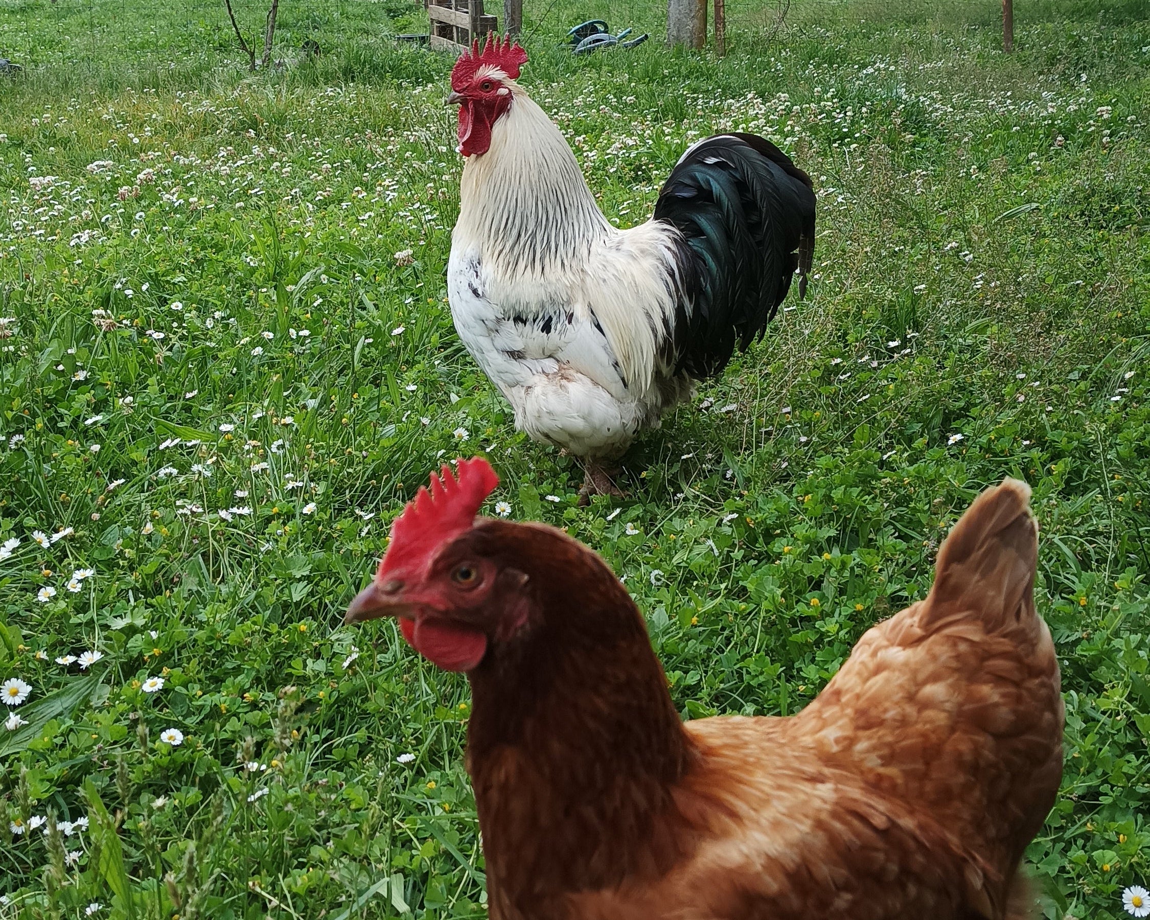 De nombreux animaux partagent la vie du domaine (poules, moutons, âne...).